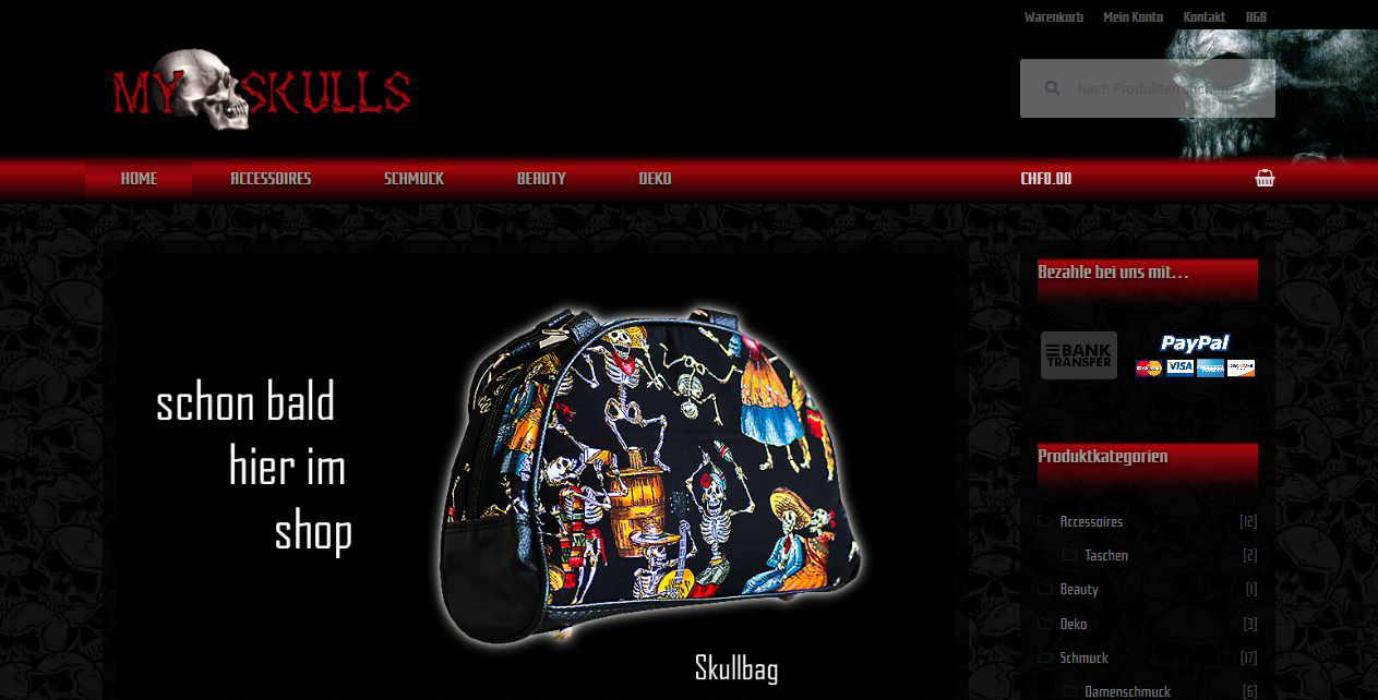 My-Skulls Online-Shop mit freakigen Produkten.